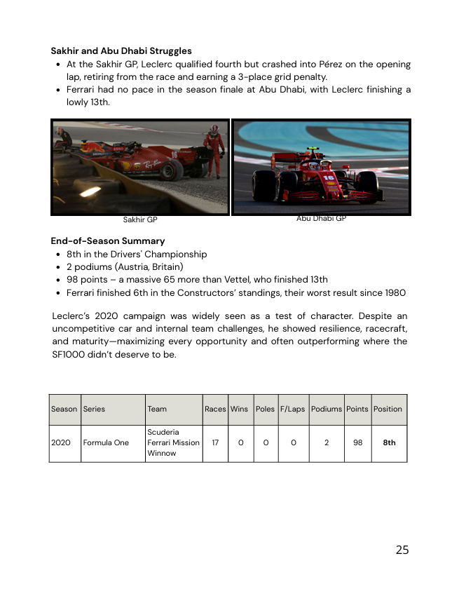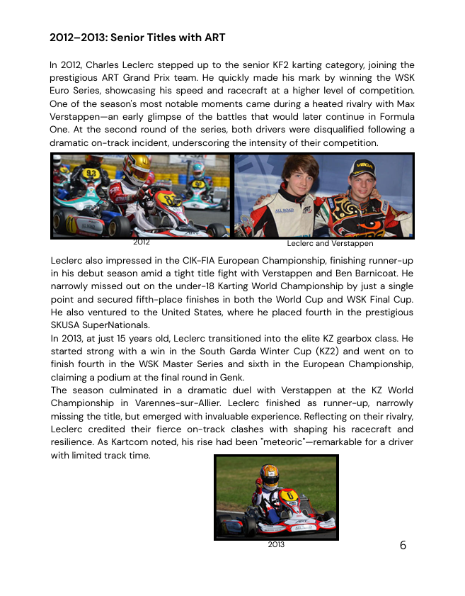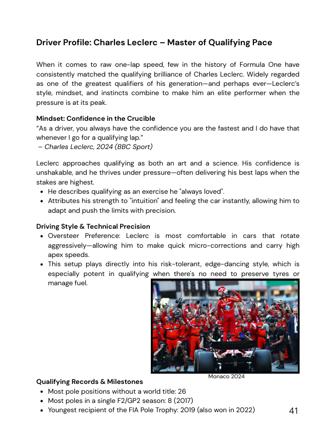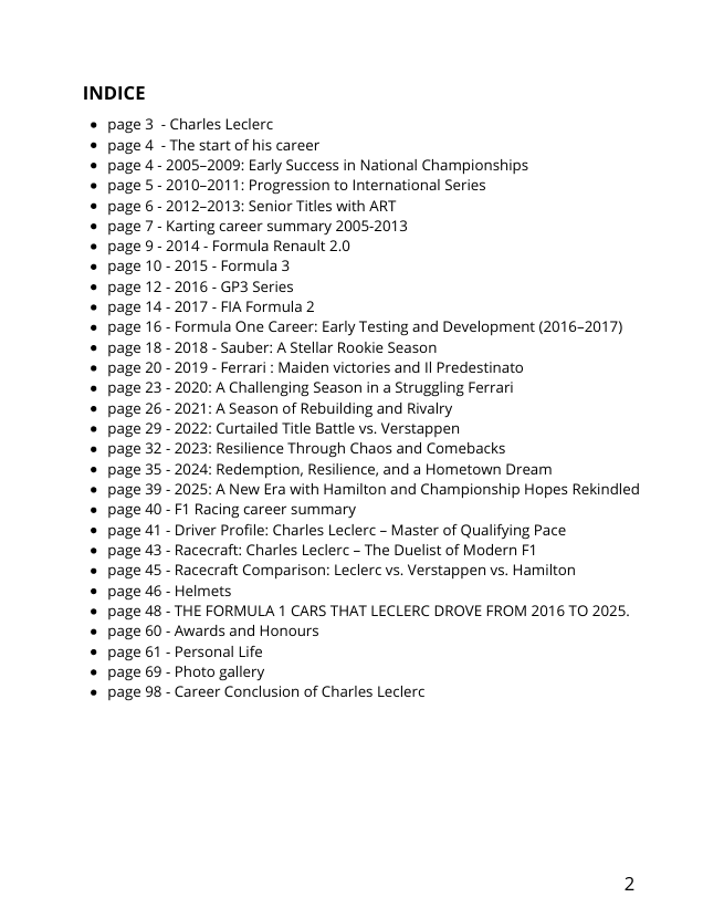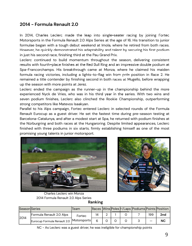 This eBook takes you through the thrilling journey of a modern motorsport icon — from dominating Formula 2 to a stunning F1 debut with Sauber, his unforgettable first win in Spa, and his transformation into the face of Ferrari’s future.
