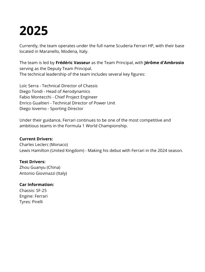 Formula 1. Since its founding in 1929, Scuderia Ferrari has been synonymous with